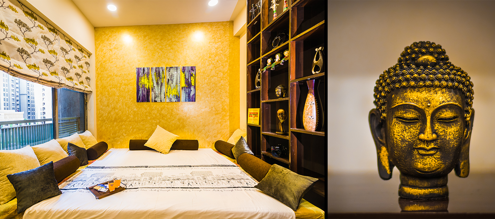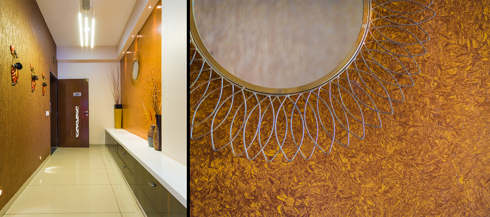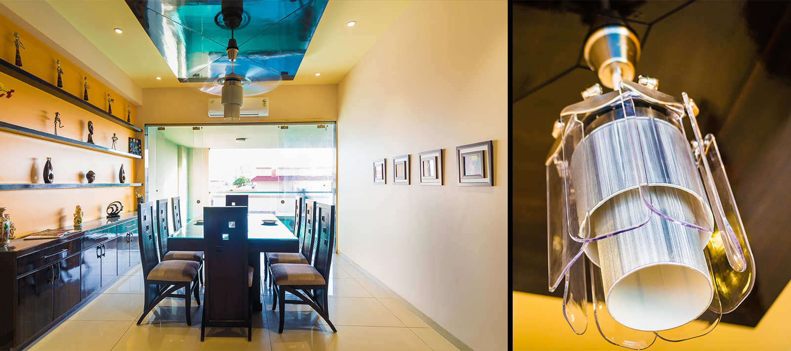 Merging the two complementing personalities - of a socially active homely artistic soul and a calm, compassionate mind - was a challenging task. The result is a vibrant colorful home with handmade art by one and a contemporary minimalistic home with elegance spaces for the other.