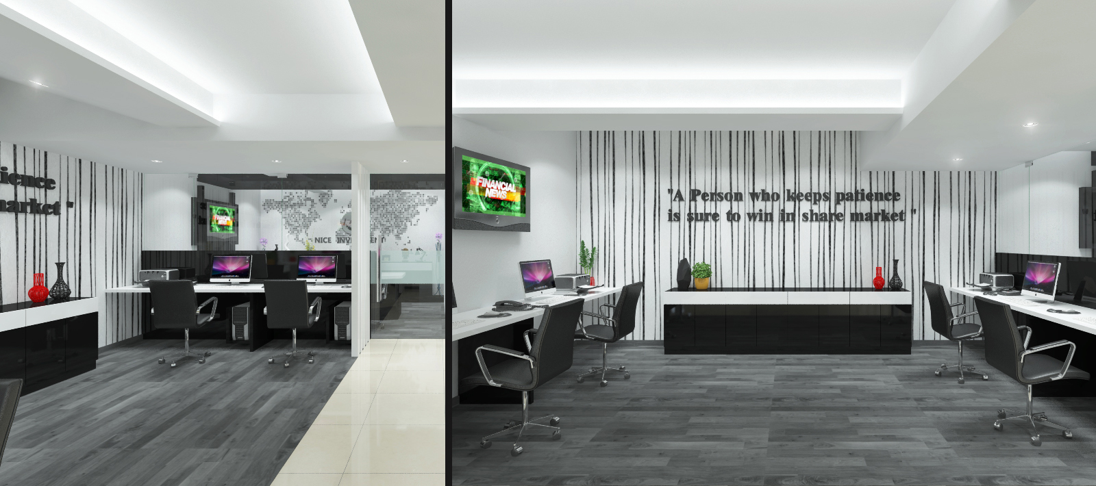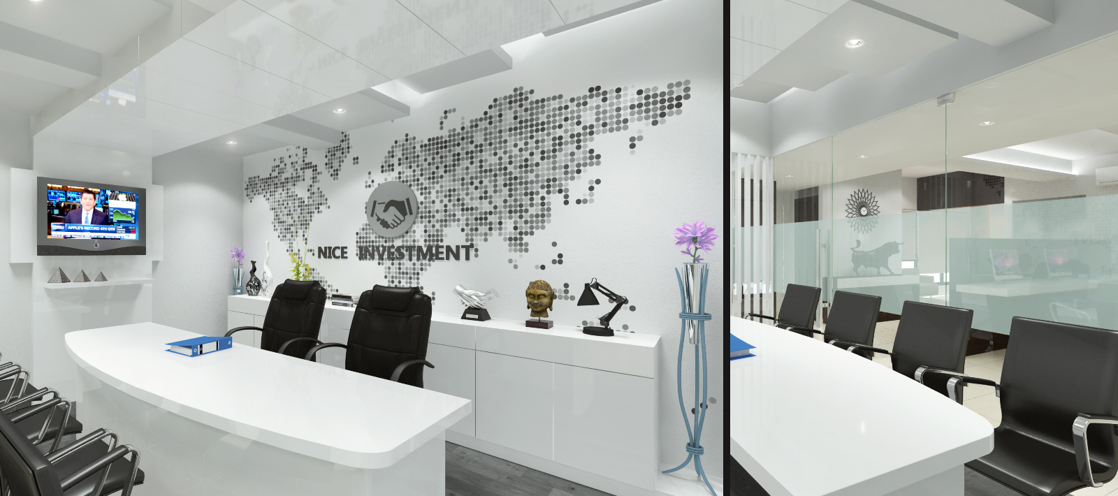 Nice investment is a well known name for financial advisory and planning services in Ahmedabad. The firm manages a portfolio worth hundreds of cores - the interior of this office space reflects the stature of the client.